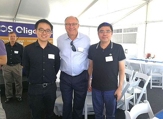 2018年5月12日-15日,棋成集團(tuán)董事長(zhǎng)龔惠江、上海棋成潤(rùn)滑材料總經(jīng)理劉遜超、上海棋成潤(rùn)滑材料副總經(jīng)理劉鋒等一行人飛赴美國(guó)進(jìn)行參觀考察及學(xué)習(xí)交流活動(dòng)。四天時(shí)間里,先后參觀了德國(guó)司馬化工集團(tuán)美國(guó)公司產(chǎn)能5萬(wàn)噸的酯類油工廠和INEOS位于LaPorte的高粘度PAO新工廠。