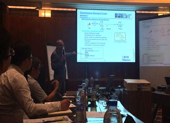 2017年6月20日,英力士公司在上海華山路希爾頓大酒店組織了一場亞太區(qū)產(chǎn)品技術交流會,亞太區(qū)銷售總監(jiān)Lau Keeseng先生和技術工程師Reiner Taege博士隆重出席。上海棋成作為英力士公司在中國區(qū)的總代理,是英力士在亞太地區(qū)不可或缺的合作伙伴,派出了多名同事學習國外先進產(chǎn)品知識,并在會上積極討論,獲益頗豐。